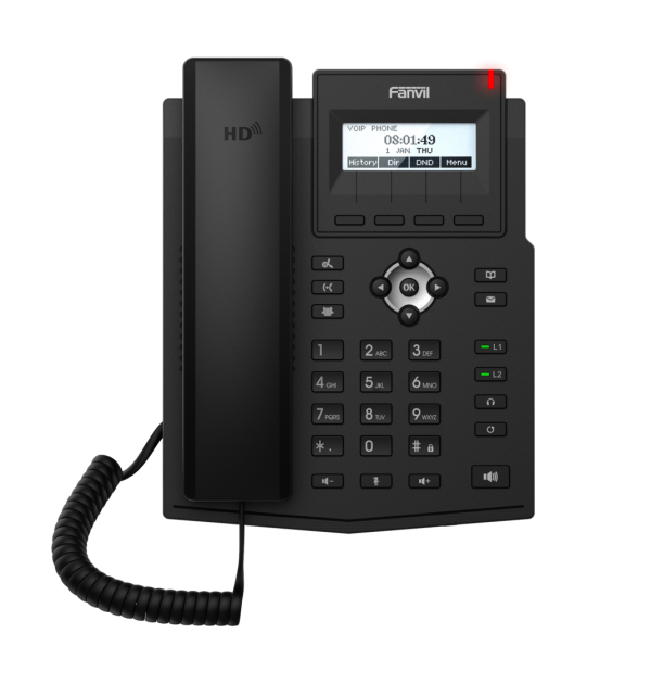El teléfono IP X1SP de Fanvil presenta una nueva y elegante apariencia, con una pantalla con luz de trasfondo clara y añade botones de linea con luces LED, ofreciendo un uso mas sencillo a sus usuarios. Incluye Fuente